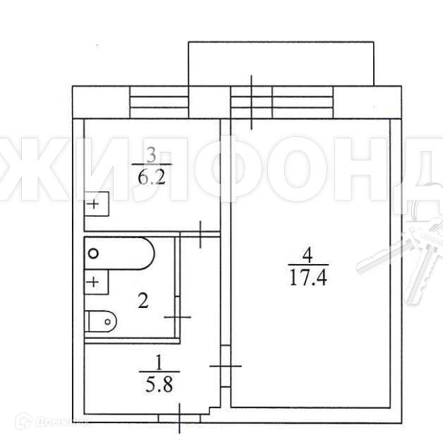 1-комнатная квартира, 33 м2, этаж 2 / 5, на продажу в Новосибирске, Каунасская улица, 1/1