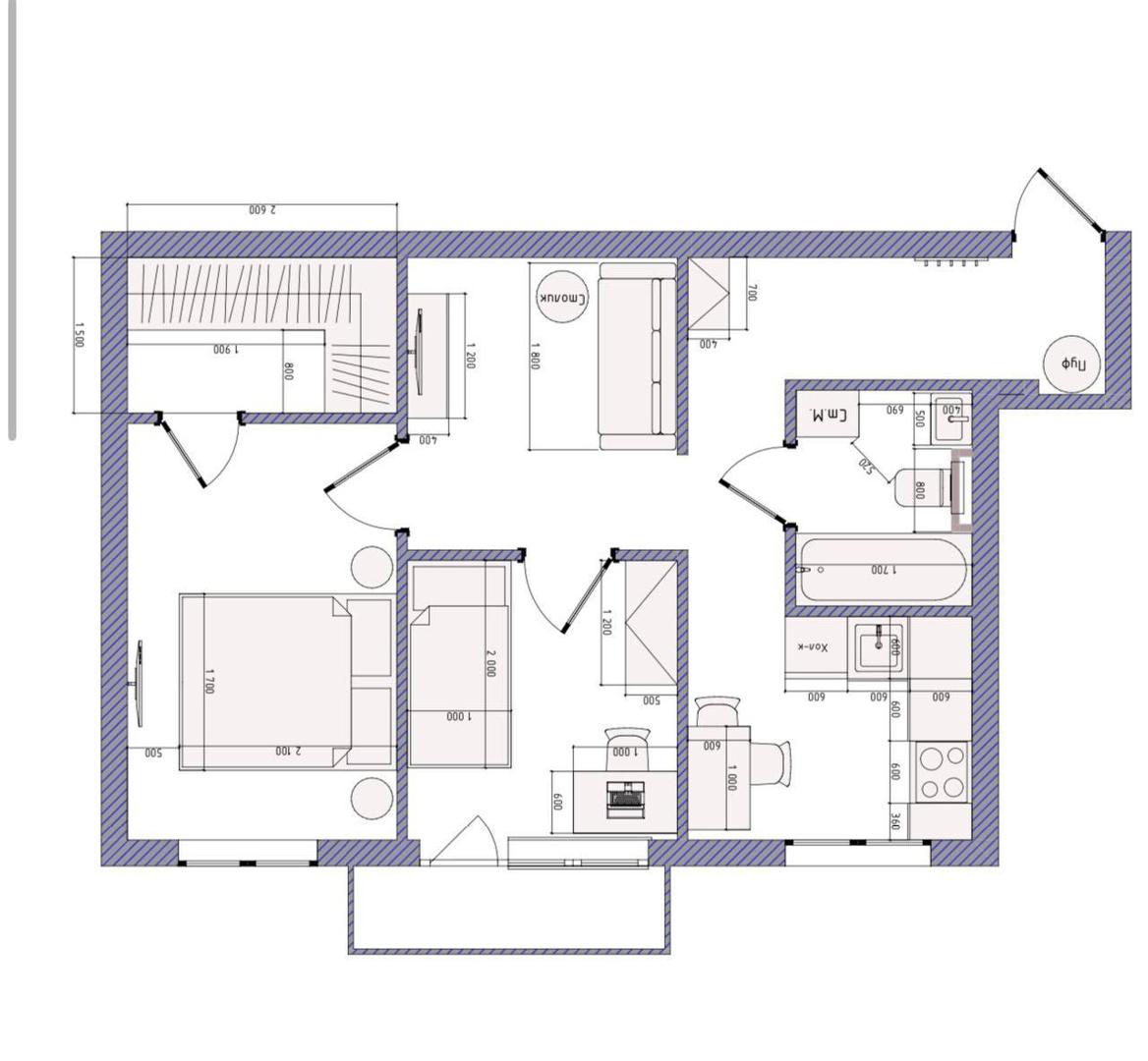 Общая площадь 42 м2