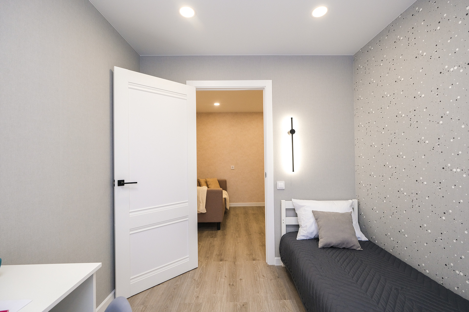 2-к квартира, распланированная под трешку, с выделенной зоной отдыха, детской, спальней и большой гардеробной.