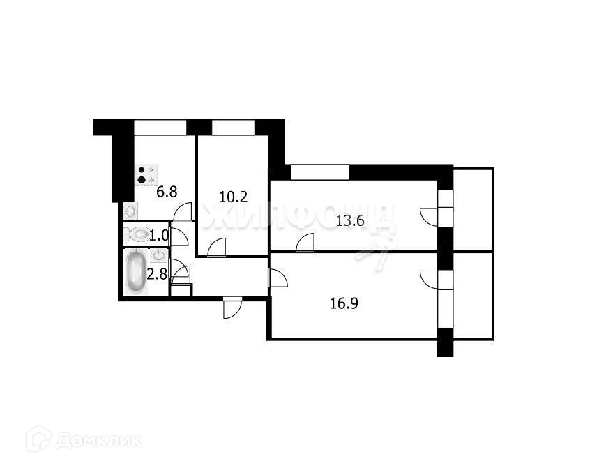 3-комнатная квартира, 56.7 м2, этаж 4 / 9, на продажу в Новосибирске, улица Декабристов, 111