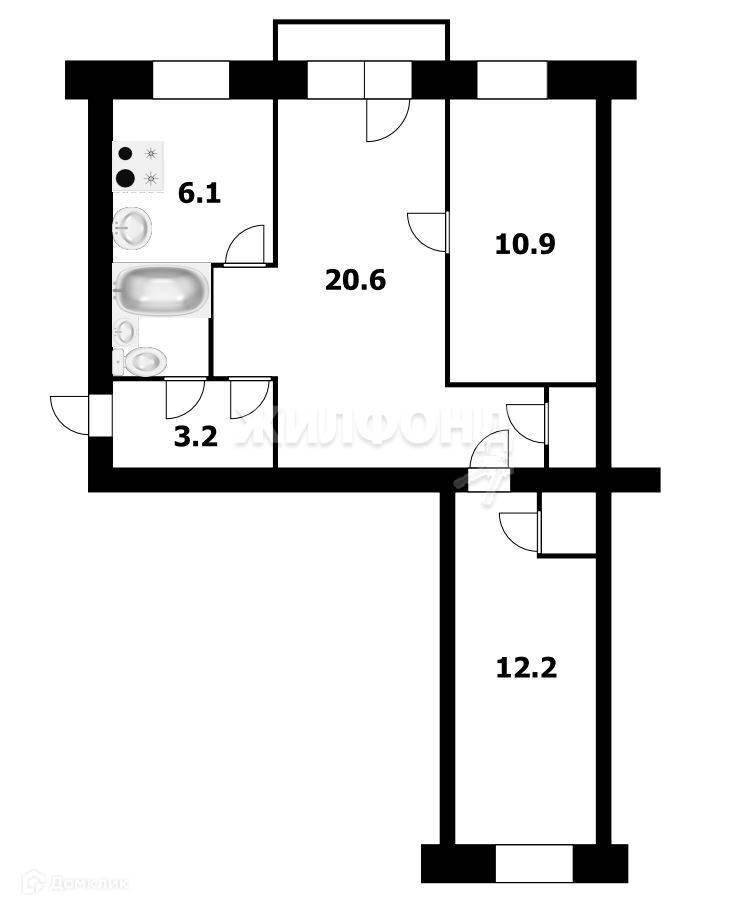 3-комнатная квартира, 58 м2, этаж 3 / 5, на продажу в Новосибирске, улица Мичурина, 41