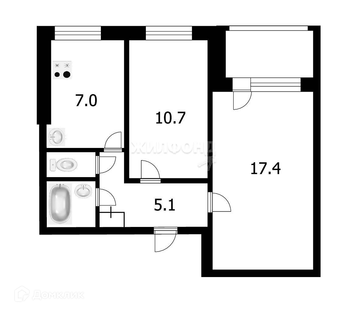 2-комнатная квартира, 44.2 м2, этаж 8 / 9, на продажу в Новосибирске, улица 9-й Гвардейской Дивизии, 16
