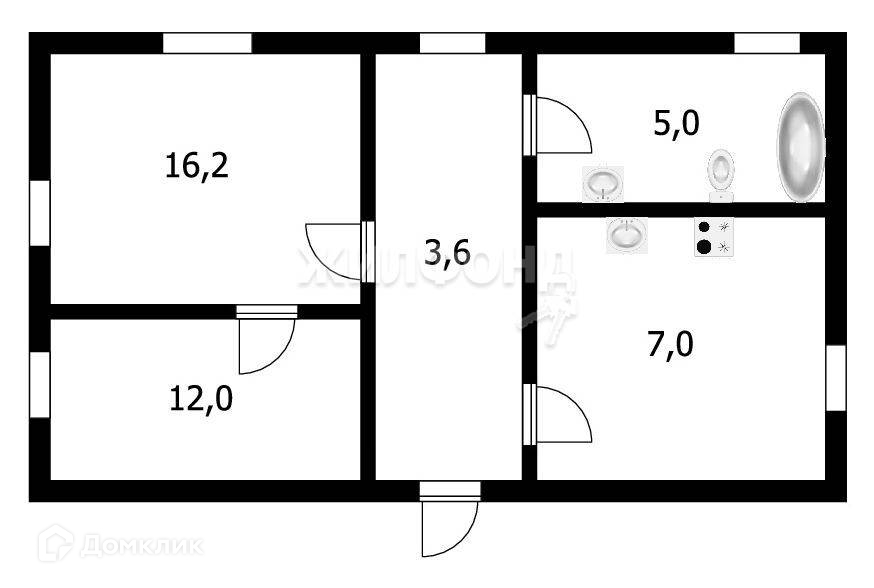 2-комнатная квартира, 42.8 м2, этаж 1 / 2, на продажу в Новосибирске, улица Чехова, 376