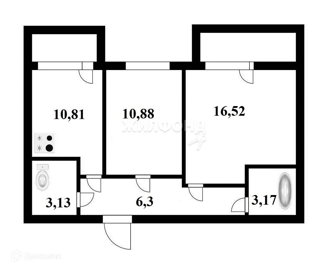 Общая площадь 50.8 м2
