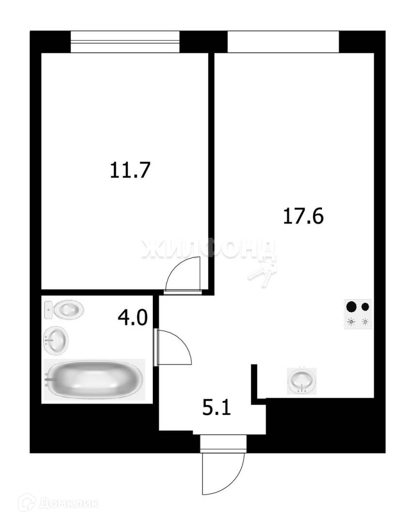Общая площадь 38.4 м2