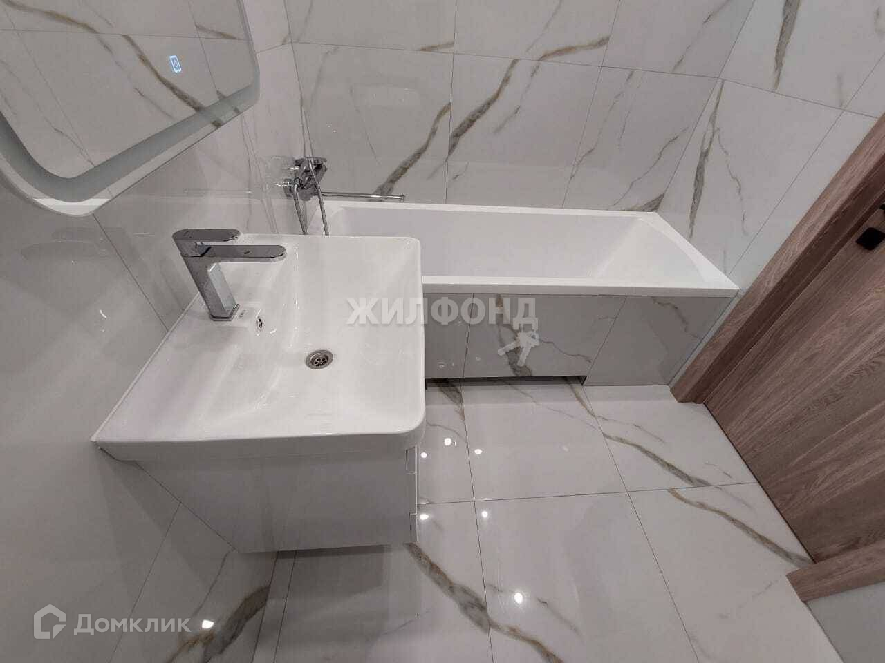 На полу в комнатах плитка замковая ПВХ. В санузле керамогранит, теплый пол, выводы под водонагреватель.