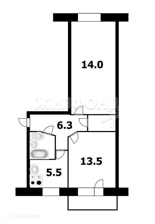 2-комнатная квартира, 44.1 м2, этаж 3 / 5, на продажу в Новосибирске, Дачная улица, 36
