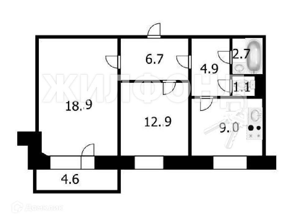 2-комнатная квартира, 56.4 м2, этаж 8 / 10, на продажу в Новосибирске, улица Молодости, 30