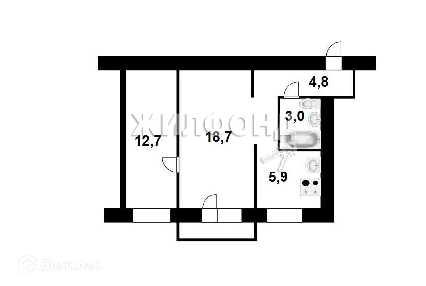 Жилая площадь 31.4 м2