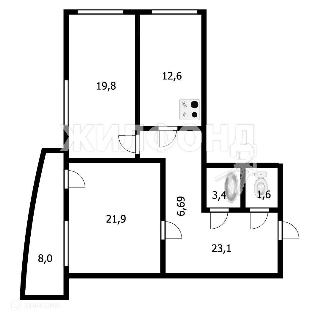 2-комнатная квартира, 82.4 м2, этаж 13 / 26, на продажу в Новосибирске, улица Толстого, 56