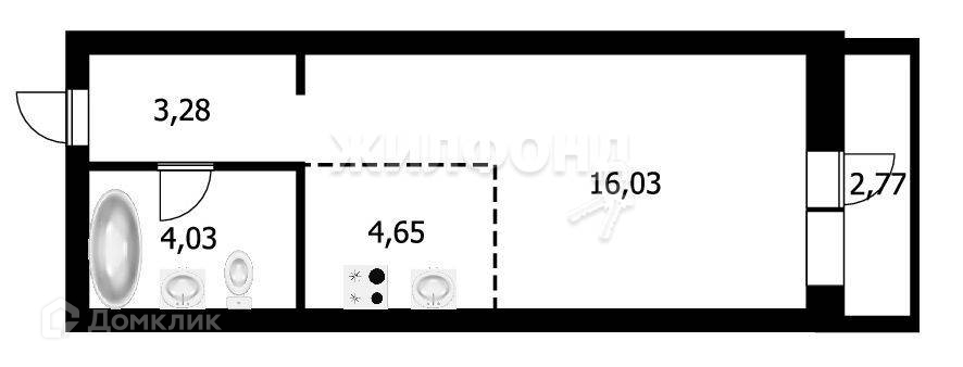 Квартира студия, 28.85 м2, этаж 8 / 25, на продажу в Новосибирске, улица Немировича-Данченко, 16/3