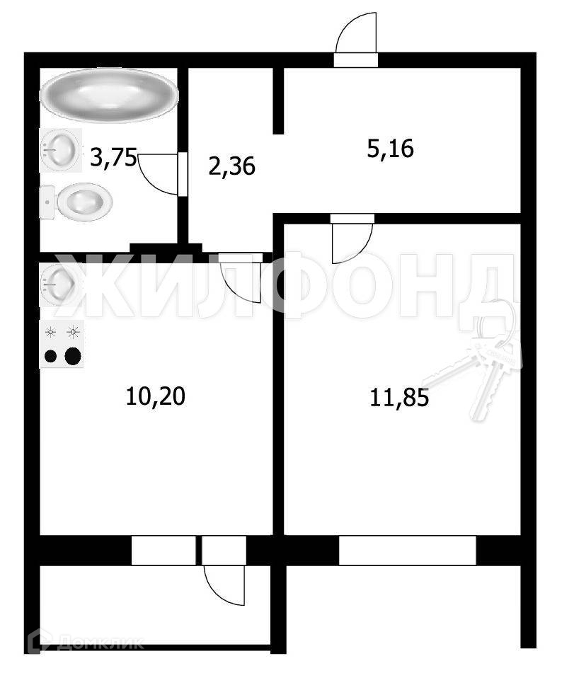 1-комнатная квартира, 33.26 м2, этаж 11 / 17, на продажу в Новосибирске, улица Забалуева, 102
