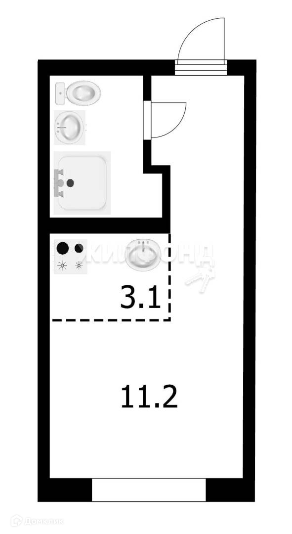 Площадь кухни 3 м2