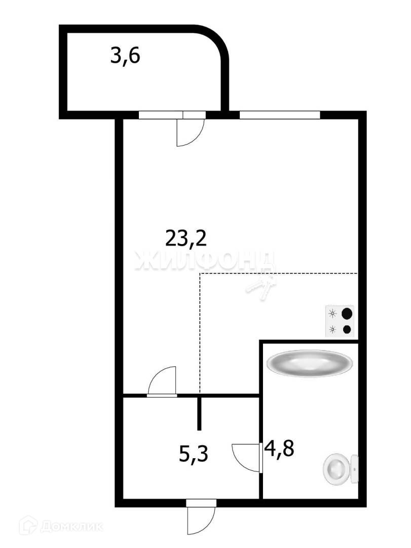 Жилая площадь 23.2 м2