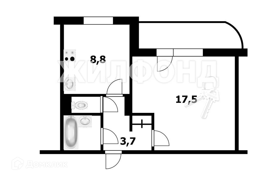 1-комнатная квартира, 33.8 м2, этаж 8 / 10, на продажу в Новосибирске, улица Селезнева, 52