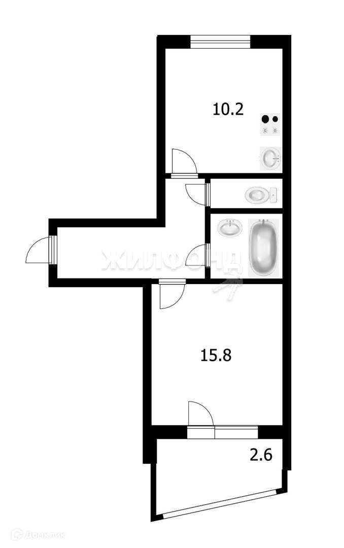 Жилая площадь 15.8 м2