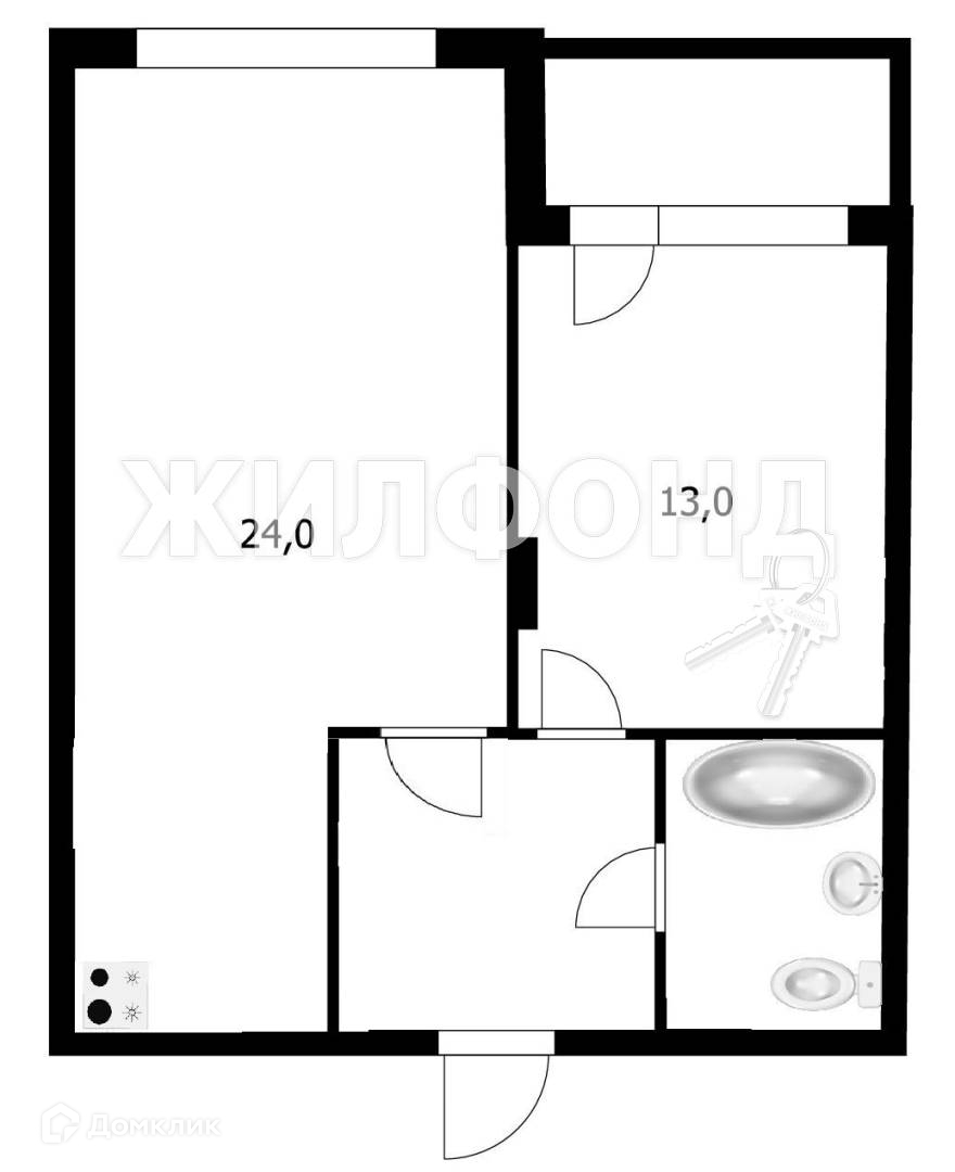 1-комнатная квартира, 42.2 м2, этаж 13 / 25, на продажу в Новосибирске, улица Бориса Богаткова, 192А