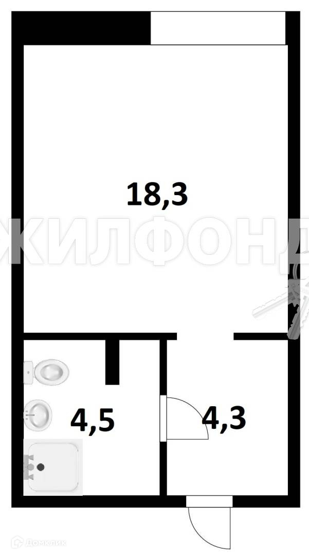 Общая площадь 26.8 м2