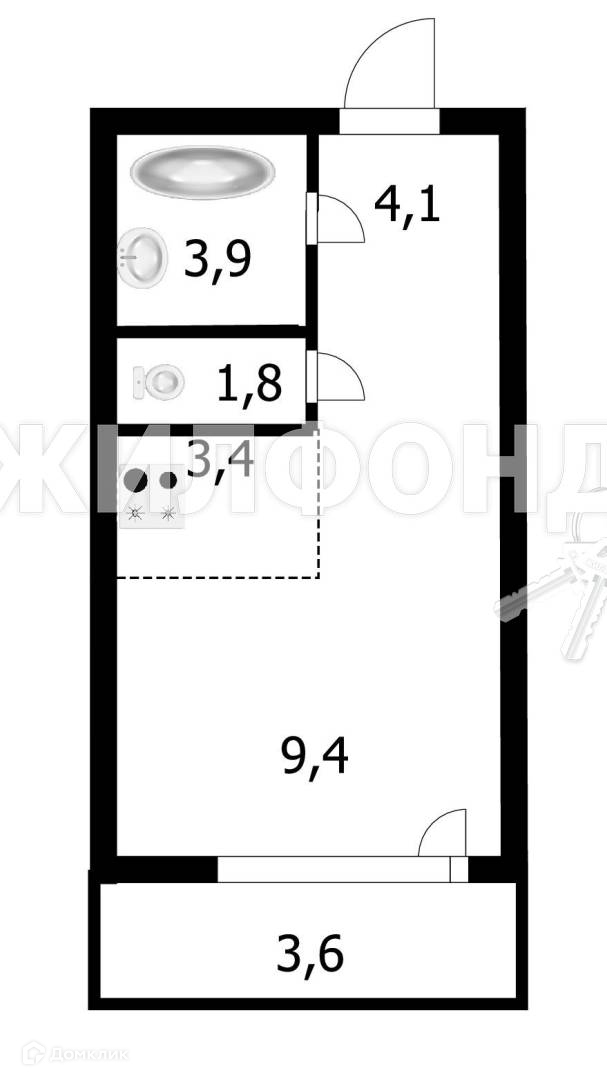 Общая площадь 24.7 м2