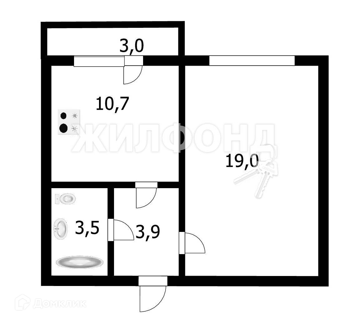 1-комнатная квартира, 36.6 м2, этаж 6 / 18, на продажу в Новосибирске, улица Титова, 255/2