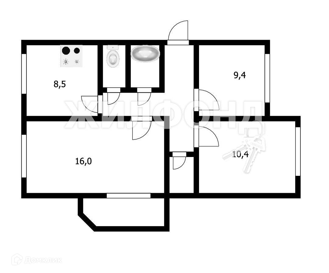 3-комнатная квартира, 60.8 м2, этаж 5 / 5, на продажу в Новосибирске, Нижегородская улица, 28