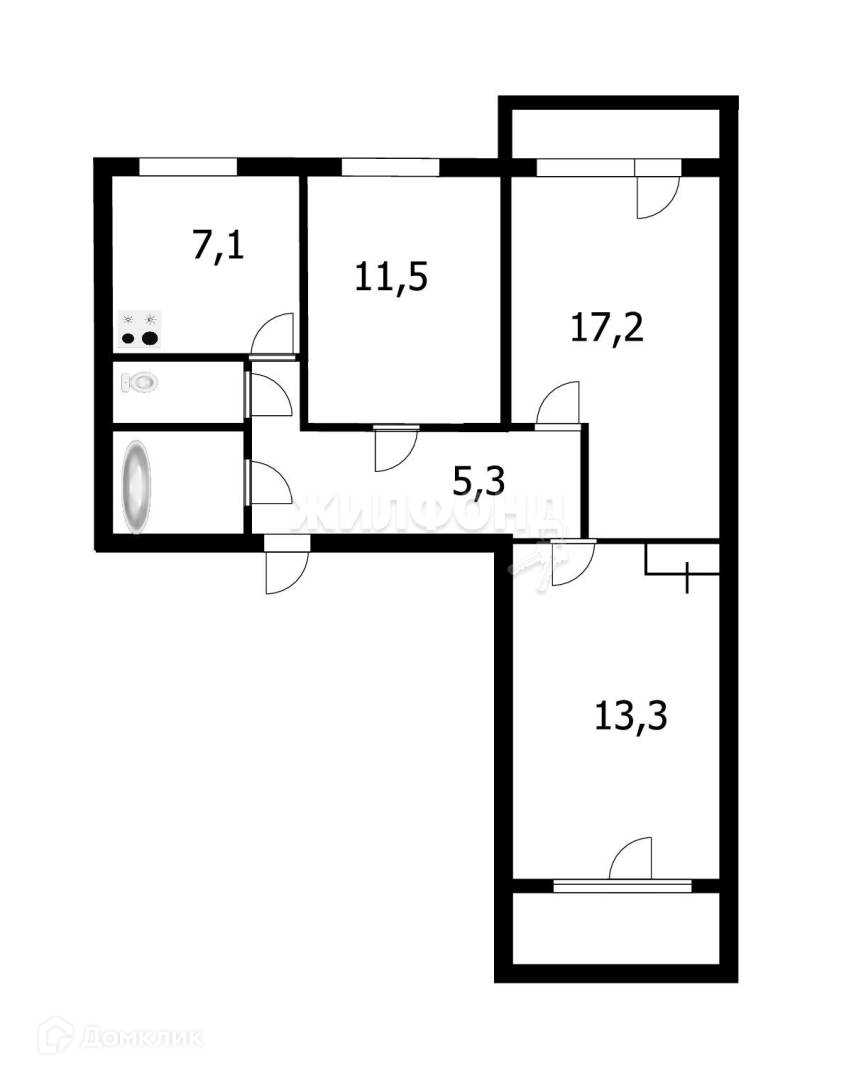 Общая площадь 59.5 м2
