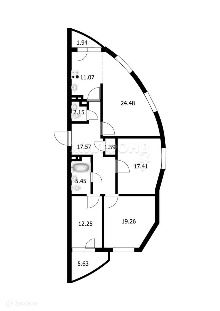 4-комнатная квартира, 113.9 м2, этаж 6 / 24, на продажу в Новосибирске, улица Галущака, 15