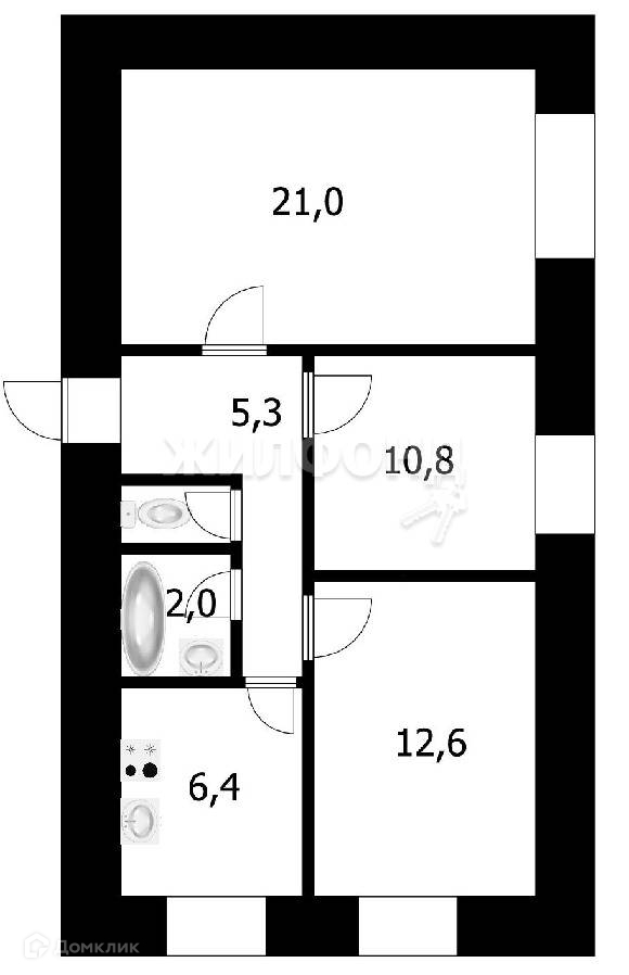 Жилая площадь 44.4 м2
