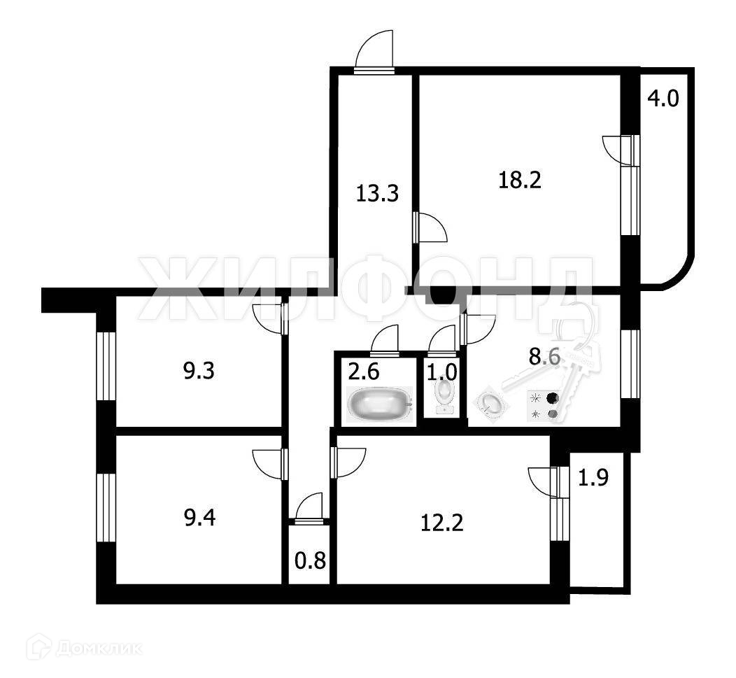 4-комнатная квартира, 75.4 м2, этаж 9 / 9, на продажу в Новосибирске, улица Связистов, 131