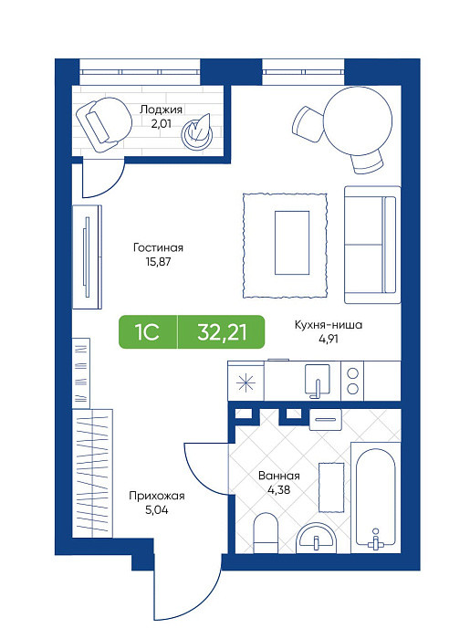 Общая площадь 32.21 м2