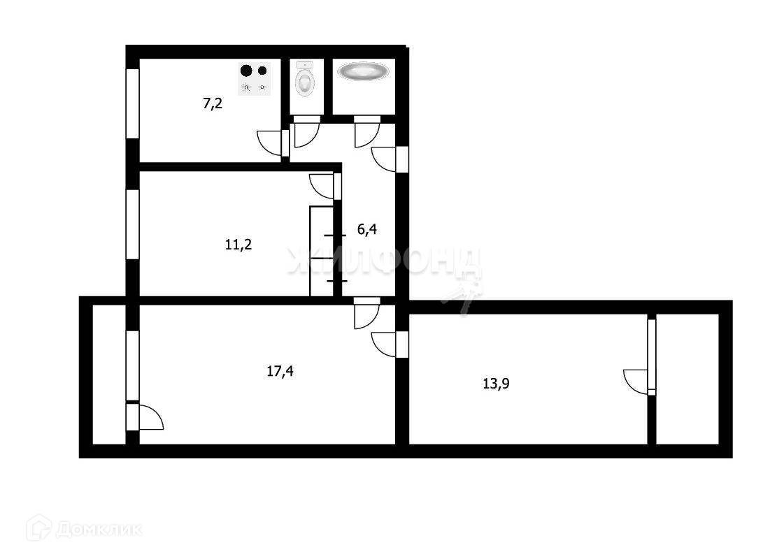 3-комнатная квартира, 60 м2, этаж 7 / 10, на продажу в Новосибирске, улица Кропоткина, 134