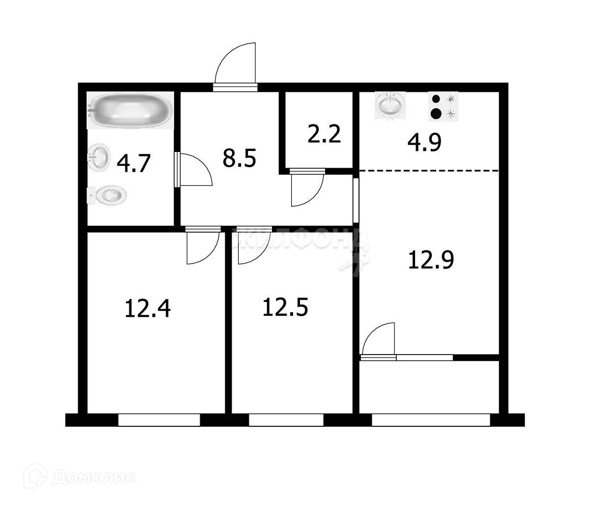 3-комнатная квартира, 58.4 м2, этаж 11 / 17, на продажу в Новосибирске, 2-я Обская улица, 71/1