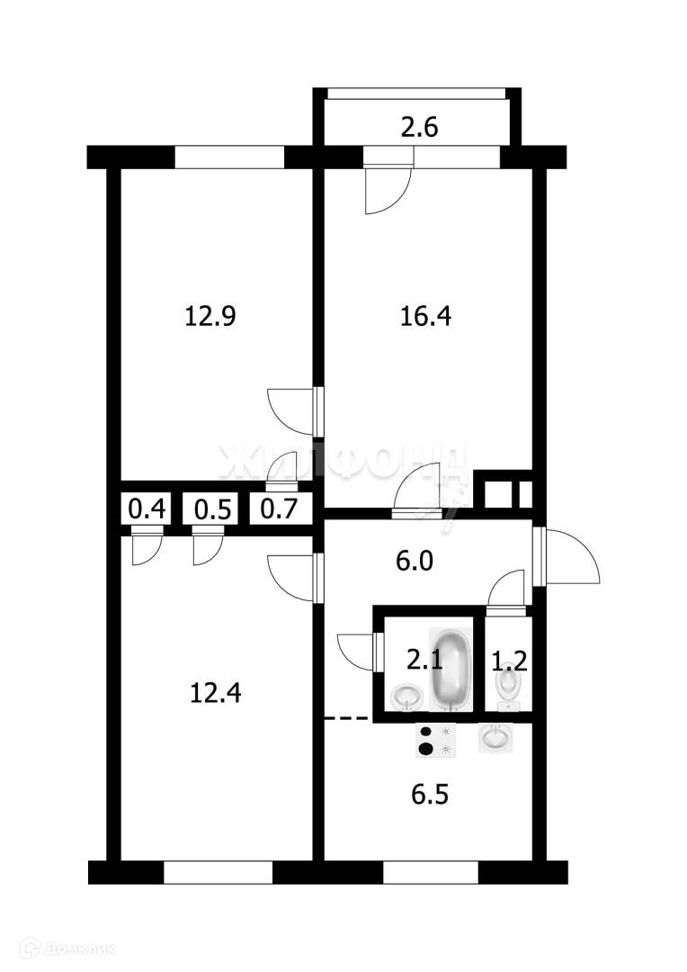 Балкон, лоджия 1 балкон