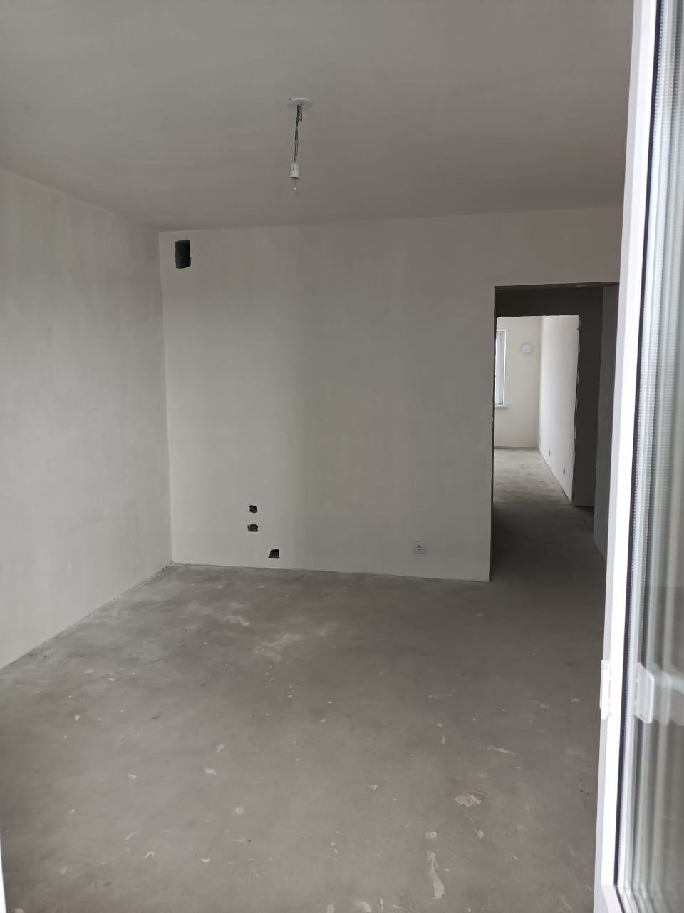 Отделка квартиры white box - на полу стяжка, стены выровнены и ошпатлёваны , потолок выровнен и побелен. Хорошая входная дверь, установлены приборы учета, безопасные окна (все створки закрываются на ключ).