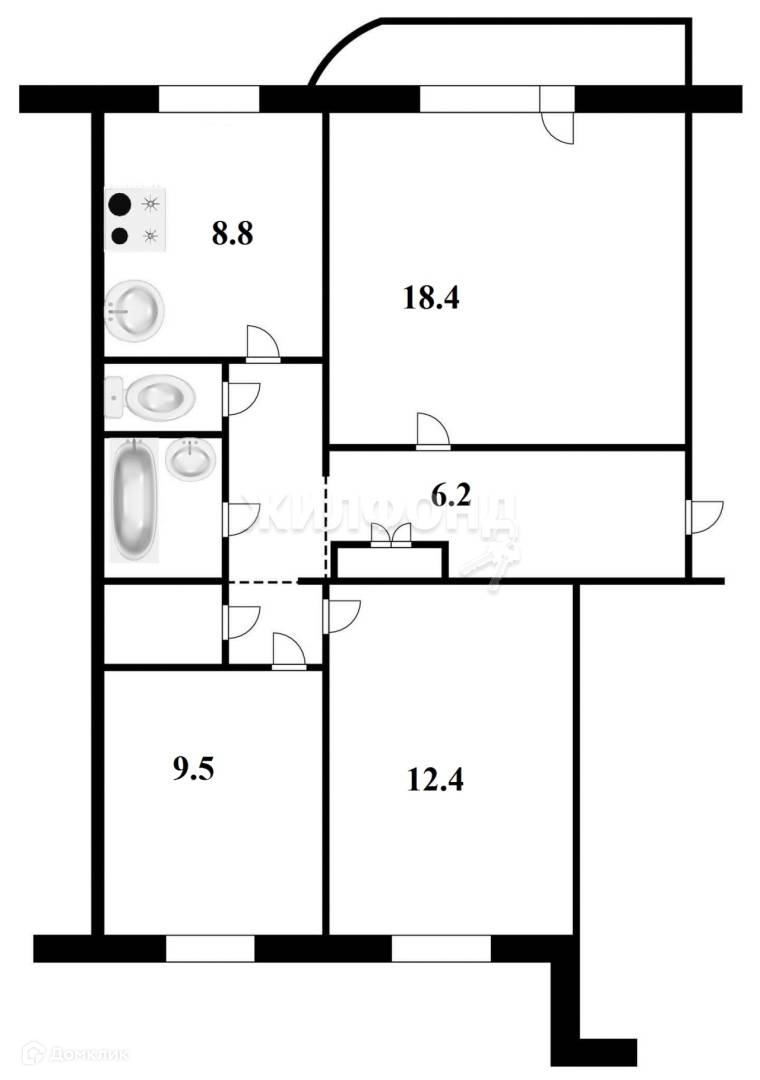 Жилая площадь 40.3 м2