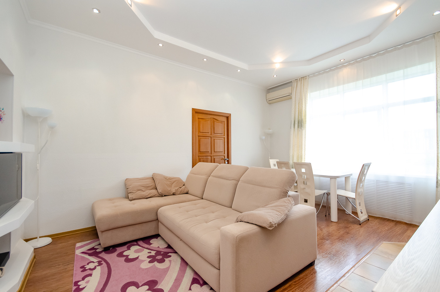 В квартире выполнен ремонт в 2022 году из дорогих и качественных материалов. В ванной комнате установлен бойлер на 80 литров и теплый пол. В гостиной установлена сплит-система для создания комфортного микроклимата. Остается мебель и техника. Высота потолков составляет 3,05 метра, а большие окна позволяют обеспечить достаточное естественное освещение.