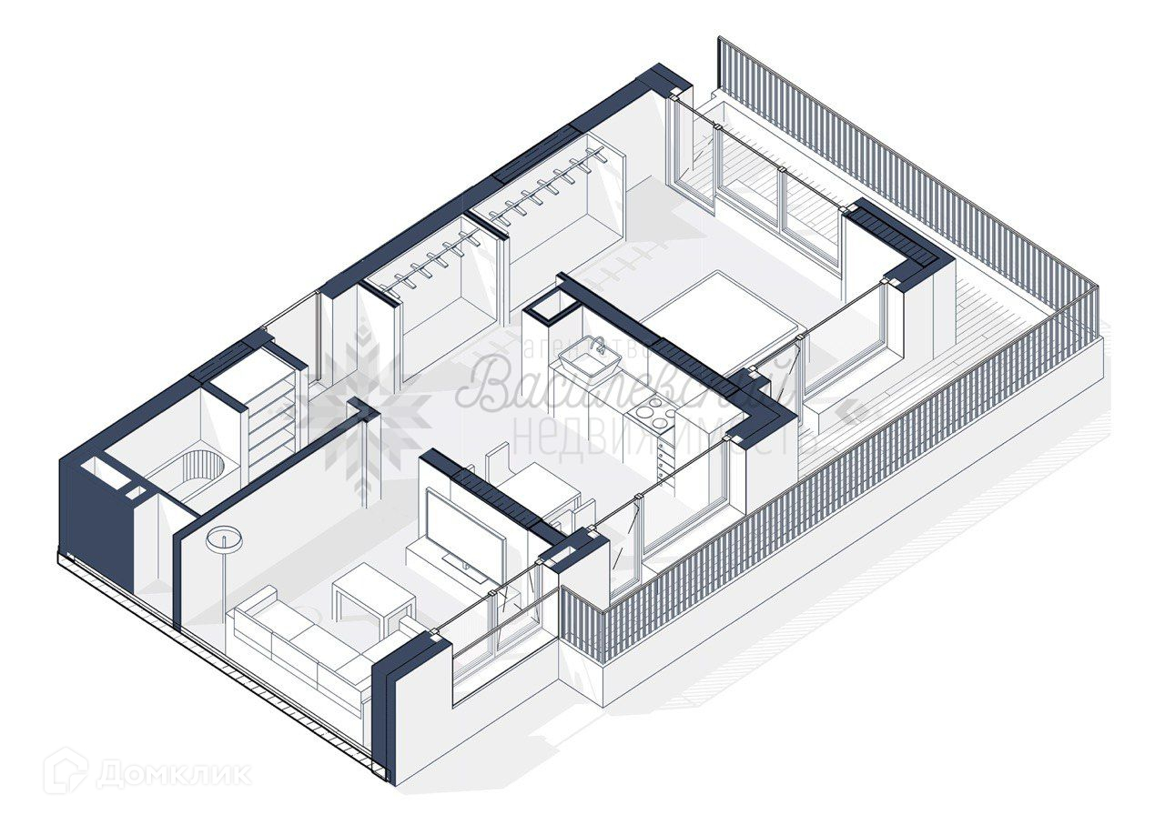 Особенности планировки: угловая, окна в пол, вид во двор, изолированная планировка, терраса 12м2 .