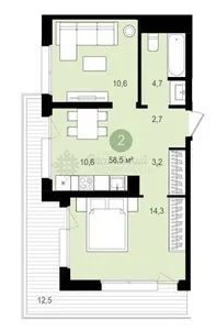 Общая площадь 58.5 м2