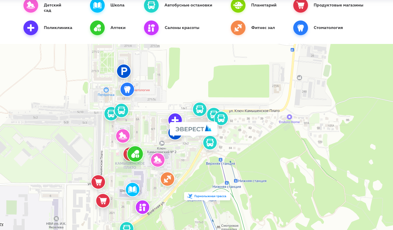 Жилой комплекс "Эверест" находится экологически чистом микрорайоне Ключ-Камышенское плато Октябрьского района Новосибирска: