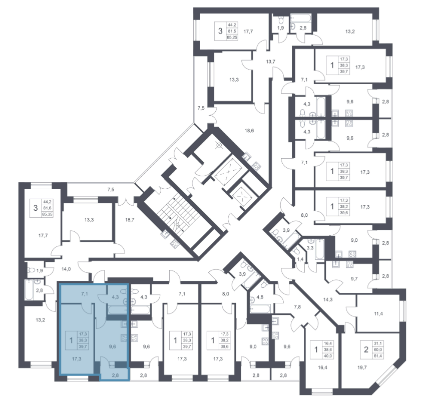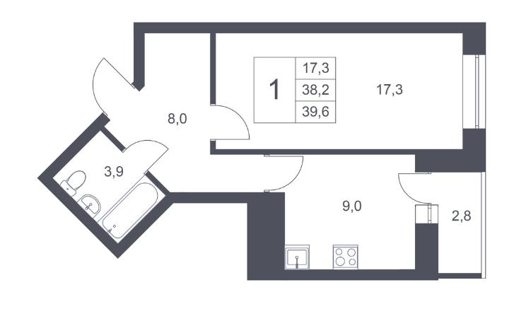 Общая площадь 39.7 м2