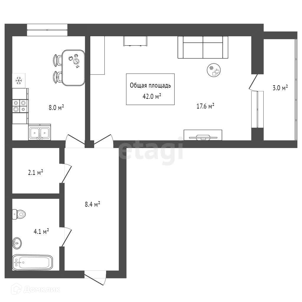 Общая площадь 40.2 м2
