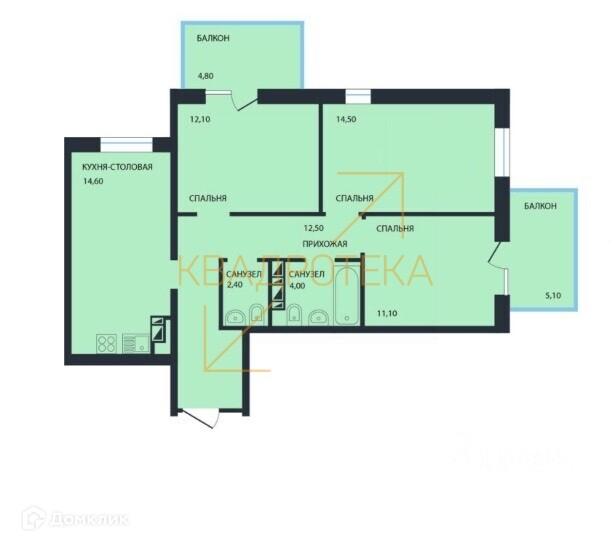 Общая площадь 72 м2