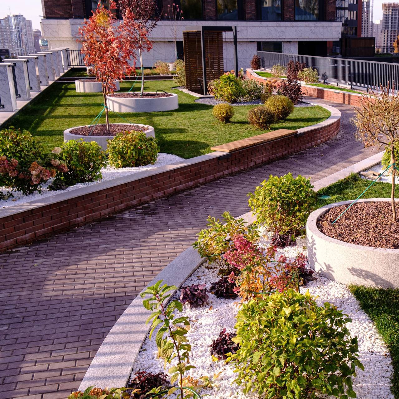 Кроме того, в жилом комплексе разработана особая конфигурация придомовой территории, включая зону активных игр и террасу для отдыха. Так же на 3 этаже имеется детская игровая и спорт зал.