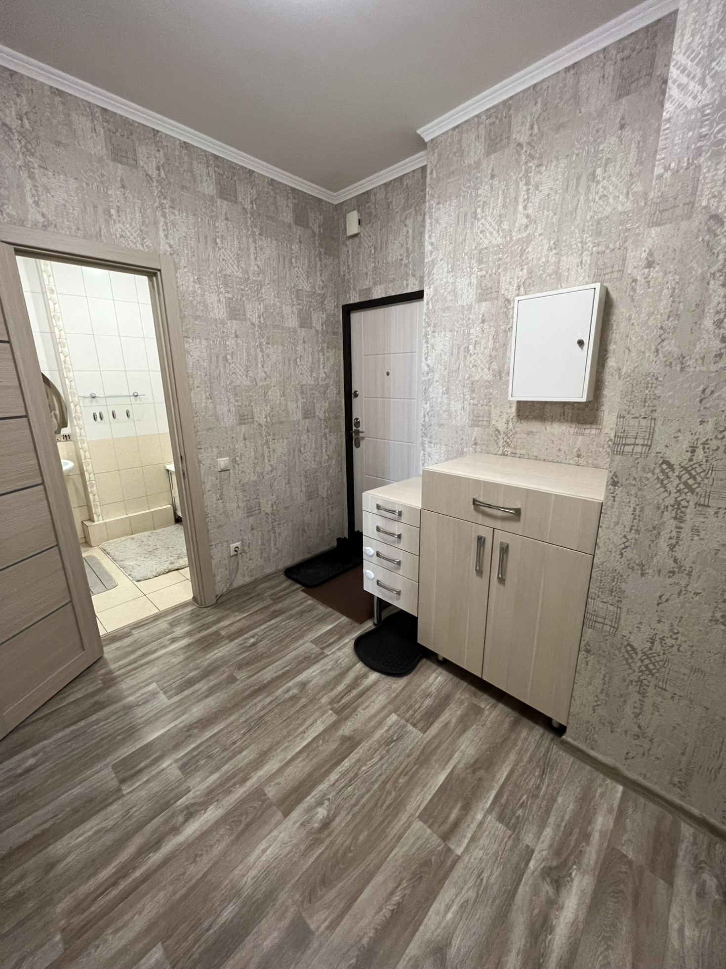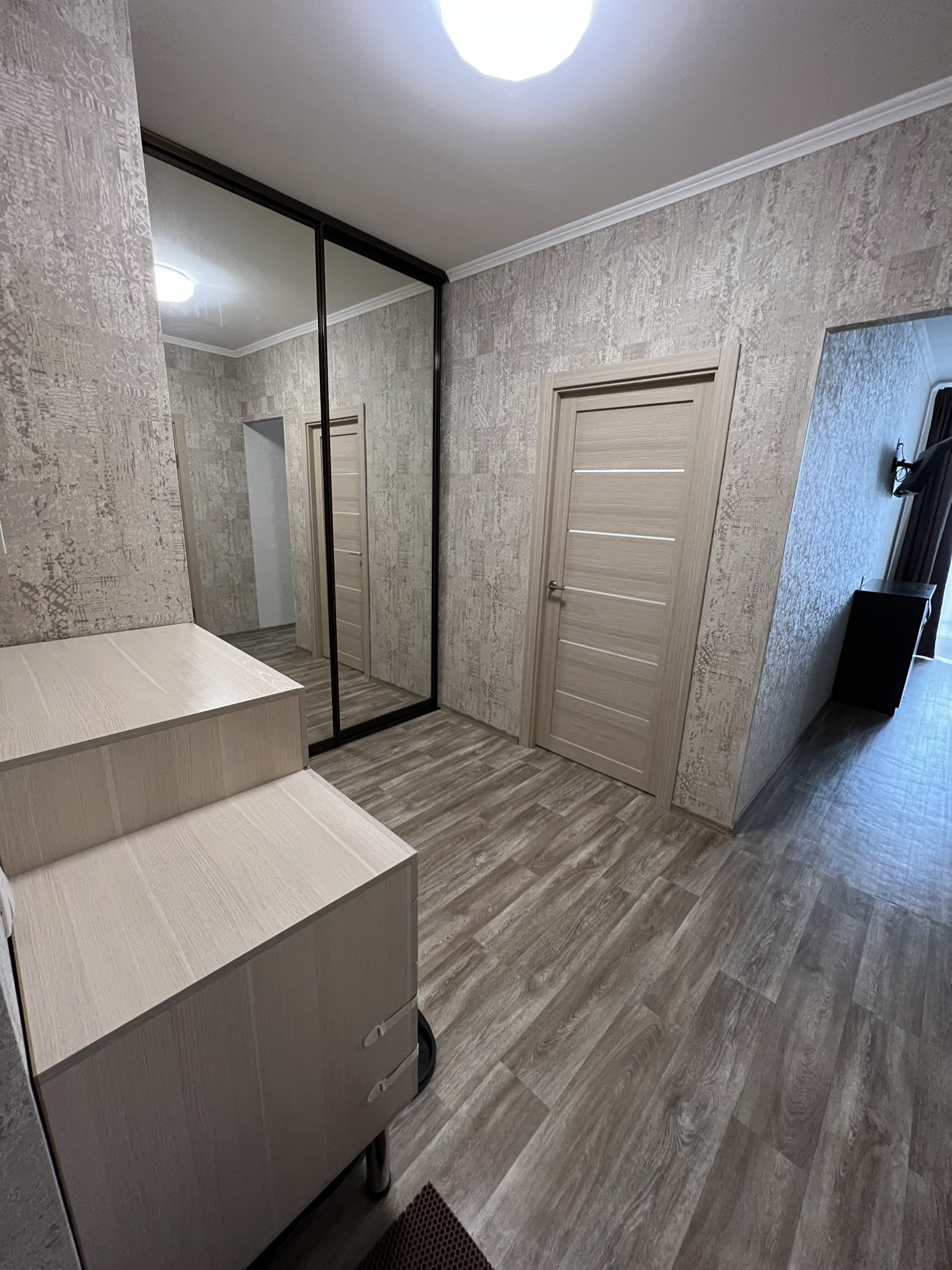 - Коридор 7,7кв установлен большой встроенный шкаф для хранения , комод для обуви останется новым владельцам