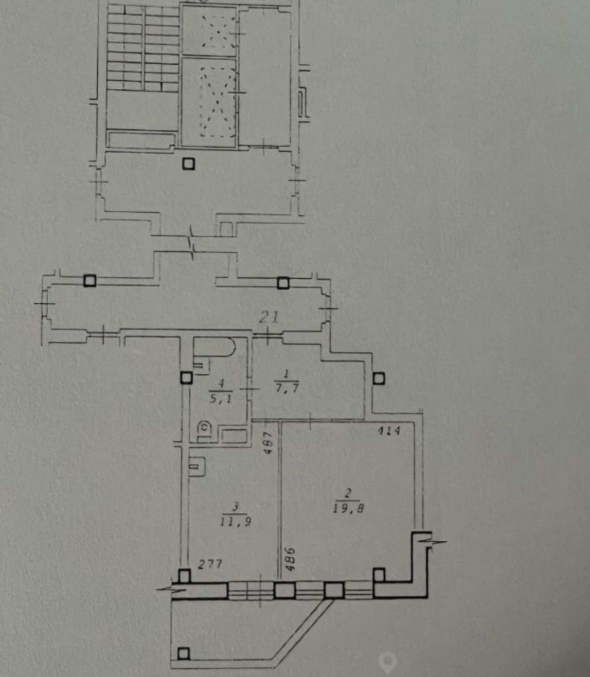 Площадь квартиры 44,5кв м