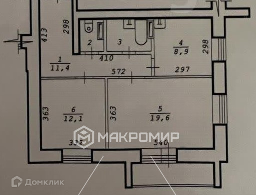 Общая площадь 57.5 м2