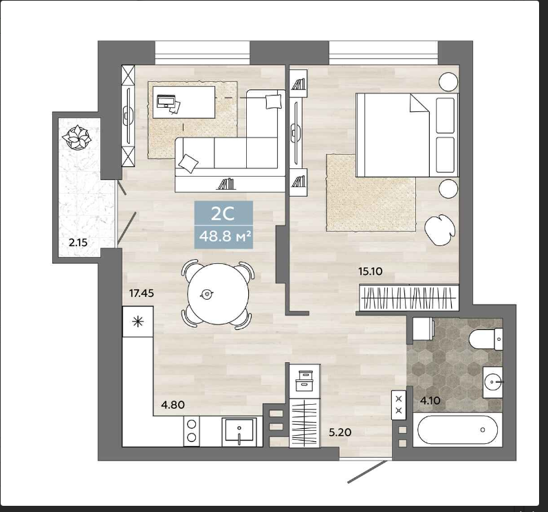 Общая площадь 48.8 м2