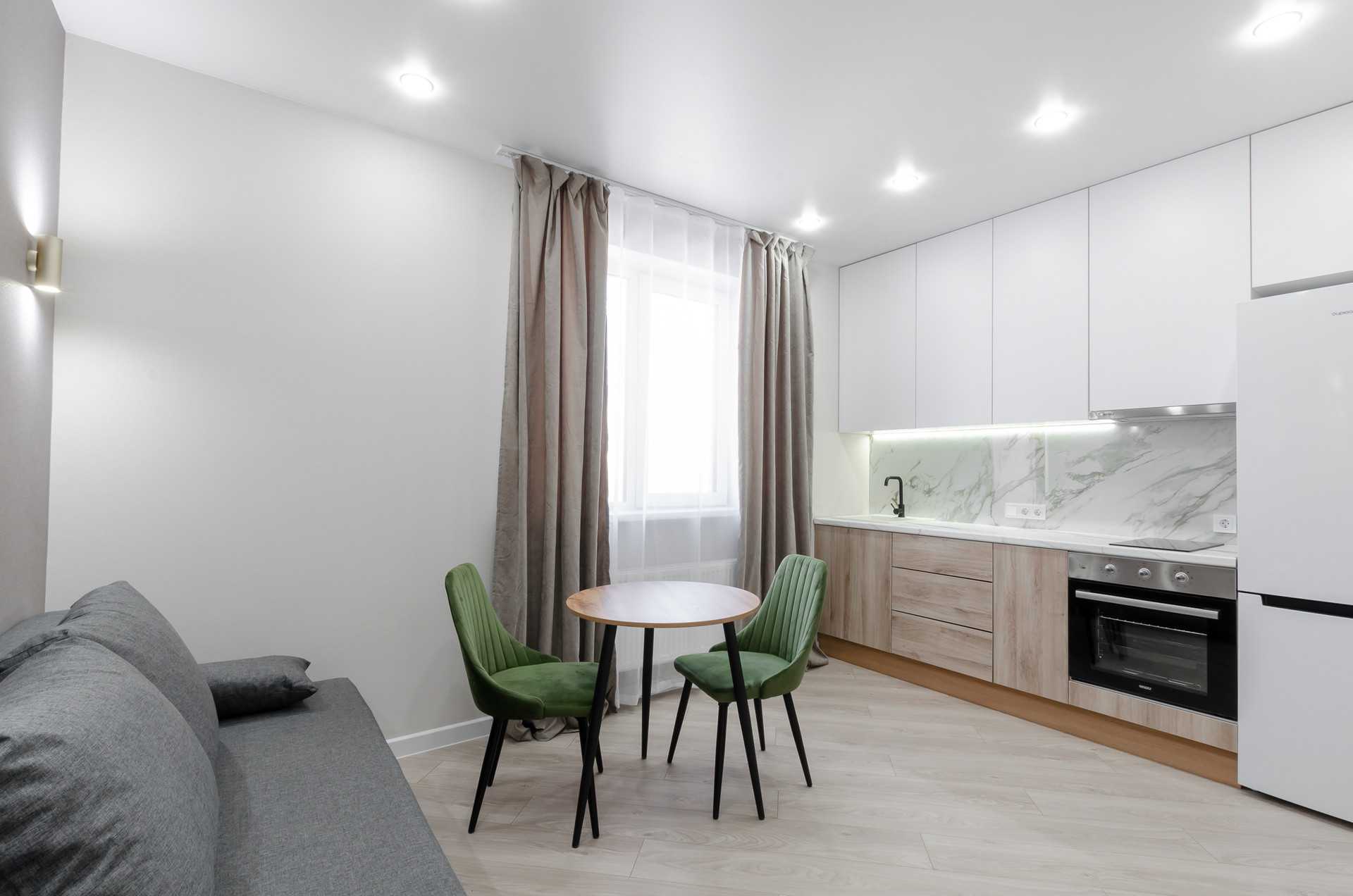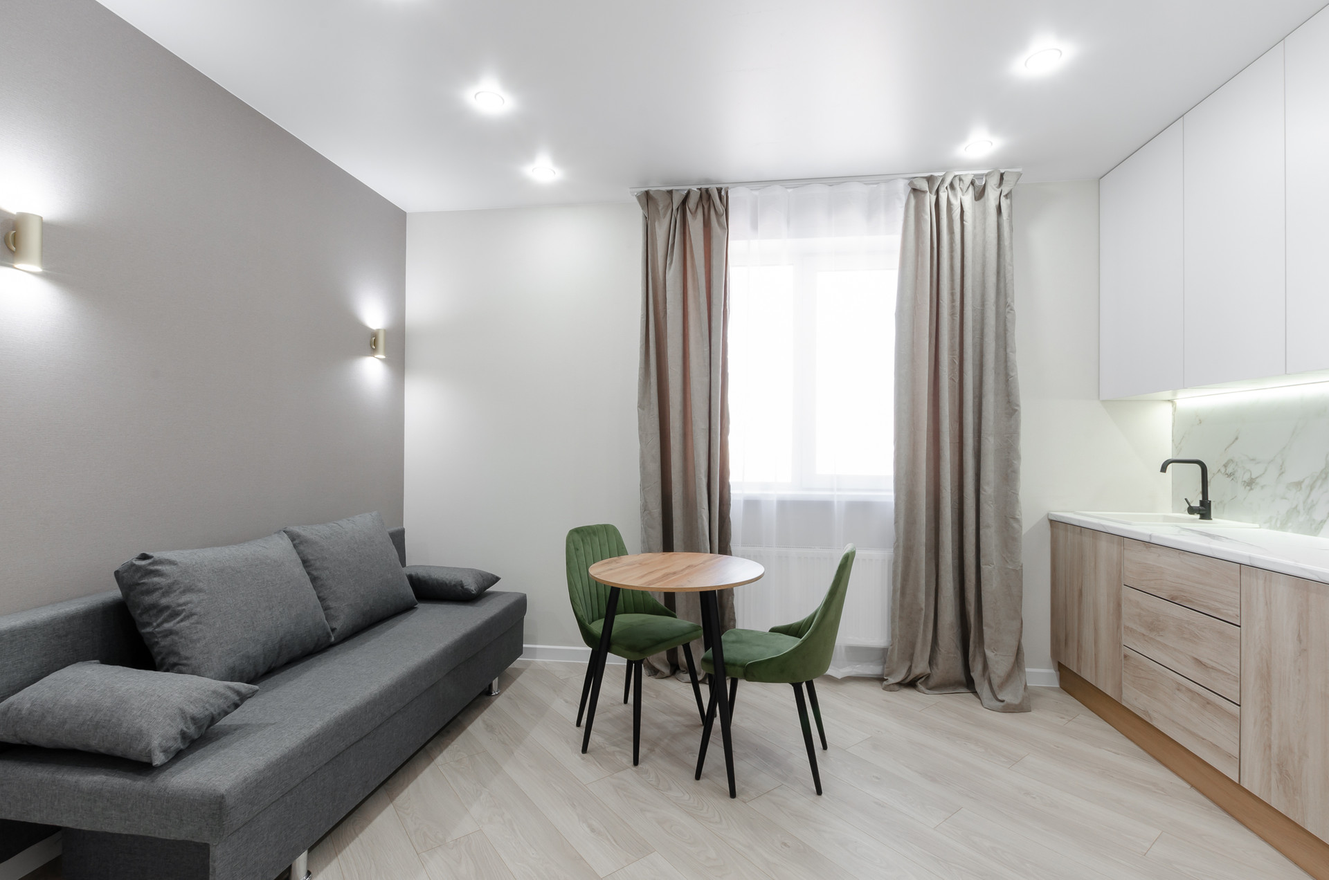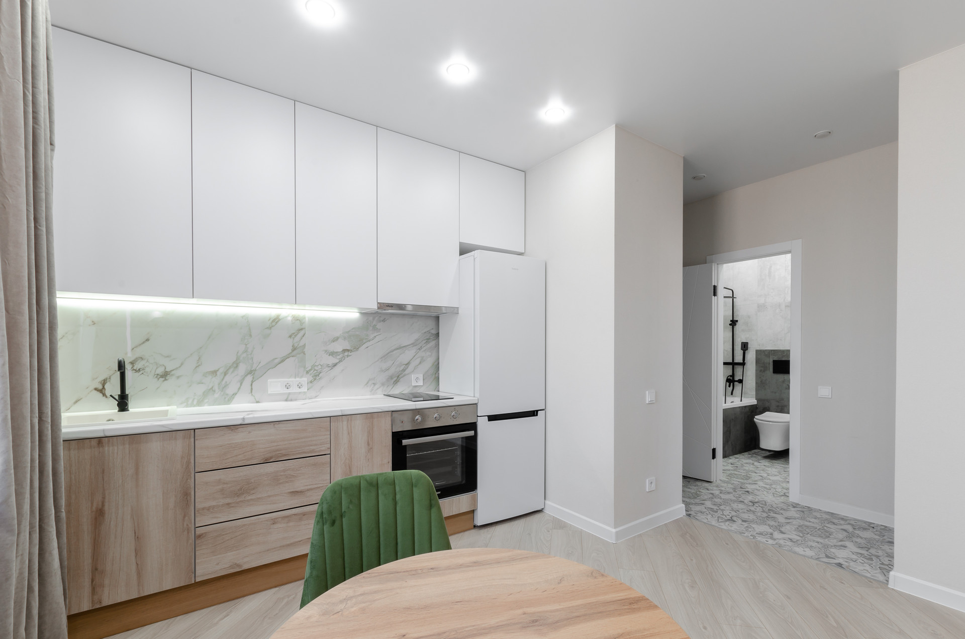 В квартире выполнен современный ремонт по дизайн-проекту.