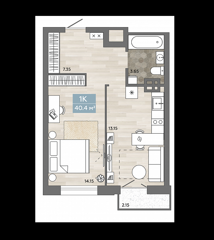 Жилая площадь 14.15 м2