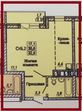 Общая площадь 32.7 м2